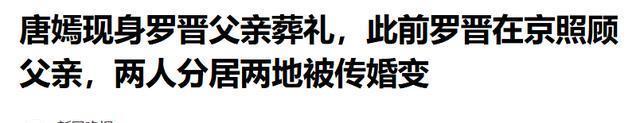 前言       就在几天前,网上关于唐嫣和罗晋婚姻状况的传闻闹得沸沸扬扬——有人说他们早已分居,       一年半没同框,商业合作账户解绑,       夫妻的互动彻底归零。       各种所谓“实锤”截图纷纷涌现,甚至连双方社交媒体的IP属地不同都被提及。       不少人觉得,这对娱圈的“模范夫妻”,大概走到了终点,但没想到,       一场葬礼,让这些铺天盖地的猜测瞬间崩塌!       在父亲葬礼上,罗晋身着一袭黑色长款大衣,手捧遗像,步履沉重,脸色憔悴,表情严肃。       而他身后不远处——       唐嫣胳膊上戴着孝,       安静地跟着,一直陪伴左右……       参加葬礼,离婚传闻被打破       23号北京的天气寒冷,罗晋父亲葬礼现场,肃穆的氛围如厚重阴霾,沉沉笼罩,令人倍感压抑。       罗晋作为家中的男孩,站在灵堂里迎来送往,每一次鞠躬、每一句感谢,皆饱含着痛失父亲的悲恸。       他整个人看上去瘦了一圈,神情里除了悲伤,还有一种长时间身心劳累的疲惫,       毕竟,父亲病重以来,罗晋一直照料他,       没有接新戏,几乎算是暂别工作。       比较引人注意的是,此前“婚变传闻”的另一名当事人,       唐嫣也出现在现场,       据知情人透露,她很早就来了,提前通过专门通道进去。       她也并不是随便露一面就走人,       而是贯穿了整个葬礼的主要流程       ——从灵堂到骨灰护送,再到接待亲友的聚餐,她一直在场。       唐嫣和罗晋       两人都身穿长款外套,戴着口罩,但那种眼神交流、走路时不自觉的习惯,很容易就让人看出他们的关系并不像外界以为的那样疏远。       当罗晋抱着父亲遗像从灵堂走出时,       唐嫣亦步亦趋紧随其后,       二人之间毫无半分疏离之感,彼时罗晋还用手指着前方,似乎是和唐嫣说着什么。       后来,罗晋走在最前面,       一路上却几次回头,       应该是在确认妻子是否跟上。       这个细节非常触动人——在最悲痛的时刻,仍然会关心自己的另一半。       结束后,他们也一起乘车离开,一起去用餐。       下车时,       唐嫣先下,然后有意放慢脚步,       回头看罗晋,等他走近,再一同进餐厅,进门时,罗晋疑似还伸手扶了唐嫣。       而且,这时有人拍到她       胳膊上的布条       ——那是为亲人戴孝的标志。       在中国传统礼俗中,如果两人真已经离婚,唐嫣就不会以“现任儿媳”的身份参与整场葬礼,更不会戴上这一份来自家族的礼节。       这些细节,全都在告诉大家:他们的感情,并不是社交平台互动多少来衡量的。       “分居”传闻的背后       过去一年,唐嫣的社交账号IP经常出现在上海,而罗晋则显示在北京。       这个事实被一些人直接解读为“感情破裂”,但现实远没有那么简单。       据多方公开信息透露,       罗晋父亲�年底病情加重,       罗晋为了照顾爸爸,推掉了自己手头不少工作和新戏邀约,几乎长期待在北京,陪在爸爸身边。       而唐嫣则留在上海,       一边参加《念无双》等电视剧的宣传,一边照顾两人的女儿,稳定小孩的生活。       这样的安排,应该是夫妻商量后的结果——一个人陪护病重父亲,另一人照顾孩子和家庭,确保两边都有人照看。       不过,在公公患病期间,       唐嫣也多次前往北京探望,       她甚至带着自家煮好的饭菜,提着电饭煲去医院,这并不是媒体捕捉的摆拍,而是有过多次的真实照料。       更甚至,不只是唐嫣,她的父亲也被曝出到场了……       唐嫣父母出现在现场       23号,唐爸身穿黑衣,佩戴黑色口罩,往前走。       他的出现意味着唐、罗两家之间的关系依然紧密,没有网上一些人所言的“亲家不和”。       毕竟如果真是分道扬镳,女方家人未必会参与这样的仪式。       罗晋的朋友圈也给了他不少支持。       比如       明道,       他专程从台北赶来参加葬礼。       两人是多年好友,       罗晋结婚时,明道就是伴郎之一。       还有,傅程鹏,他也穿着一身黑衣出现在罗晋父亲葬礼现场,打电话时也是愁眉不展。       在至亲离世的悲痛时刻,家人和朋友都伸出手,这种力量,有时候比任何公开声明都更具说服力。       沉默是最有力的反击       在这场葬礼之前,传闻几乎已经“盖棺定论”——没互动,一年见不到一次,确认是婚姻出了问题。       很多人陷入了所谓的细节分析:谁的IP在上海,谁的照片里没有配偶,谁在哪个节日没有公开合影。       但葬礼上的这一幕,让这些分析显得不再重要。       因为真正的关系,不是靠社交平台拼凑出来的,而是在悲伤和困难面前,你身边的人会不会出现,会不会陪你一起走过这段路。       唐嫣的出现不是应付,而是参与到每个重要时刻,罗晋的回头也不是偶然,而是潜意识里确认妻子在自己的身后。       结语       对于公众人物来说,婚姻总容易被外界拿来做话题。       粉丝关心,媒体也会放大这些信息。       可是,夫妻的真实生活很少会完全呈现在公众面前。       有时你看到的只是其中一面,比如,他们很少在公开